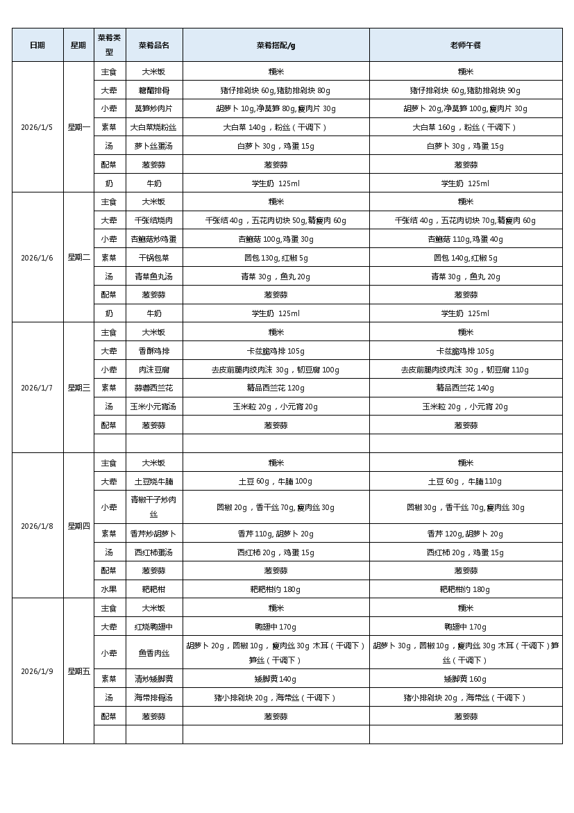 汇通路小学2025-2026学年度第一学期第19周菜谱