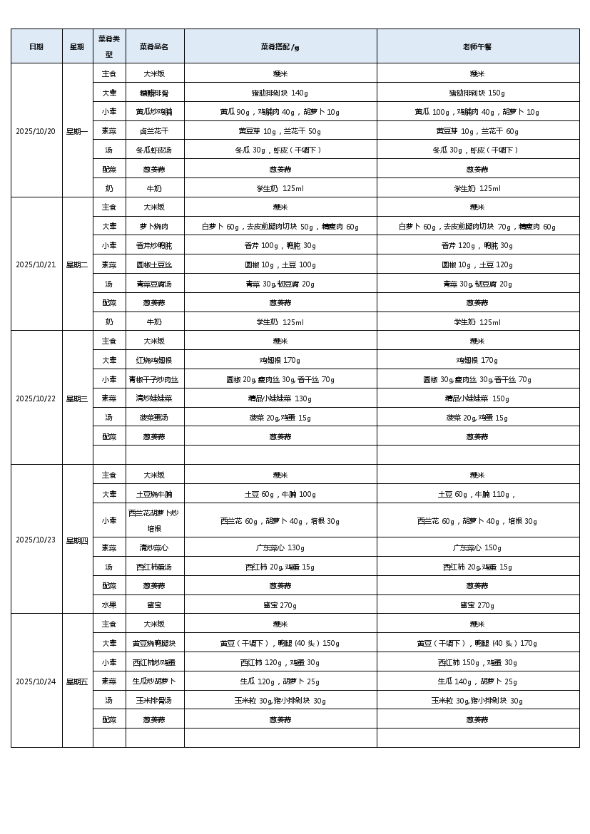 汇通路小学2025-2026学年度第一学期第8周菜谱