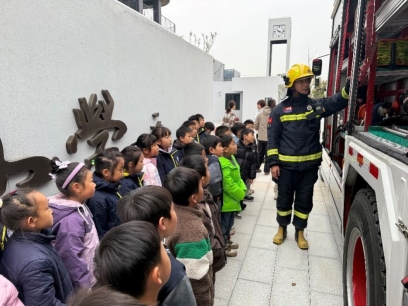 模拟灭火的实操训练结束后,孩子们现场与消防车进行了“零距离”交流。孩子们眼里充满好奇,防化服、隔热服等装备的作用,切割机、绝缘剪等各类特殊工具在抢险救援时的使用技巧,随着消防员叔叔的娓娓道来。